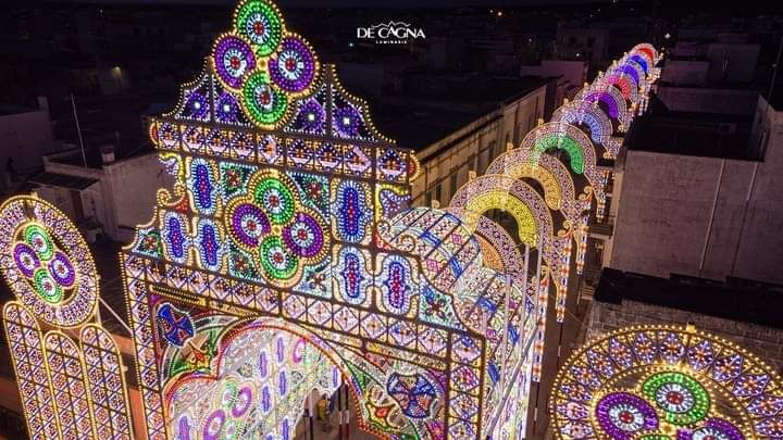 In anteprima le luminarie scelte per la festa patronale che inizia questa sera ad Avetrana. Sono state svelate, attraverso i social, dall’azienda cui è stato commissionato il servizio: De Cagna Luminarie.