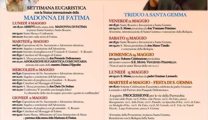 Martedì 16 maggio – FESTA DI S. GEMMA