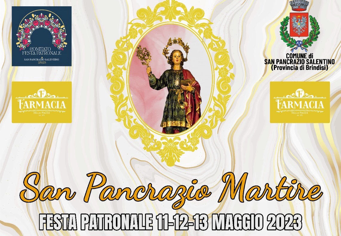 L’11, 12 e 13 maggio a San Pancrazio è festa per San Pancrazio. Torna puntuale, fedele alla tradizione ma con tante novità, la festa più attesa dell’anno con un programma di appuntamenti civili e religiosi che l’Amministrazione comunale della città e l’associazione Santi Pancrazio e Francesco d’Assisi hanno preparato per l’intera comunità e per quanti visiteranno la cittadina nella tre giorni.