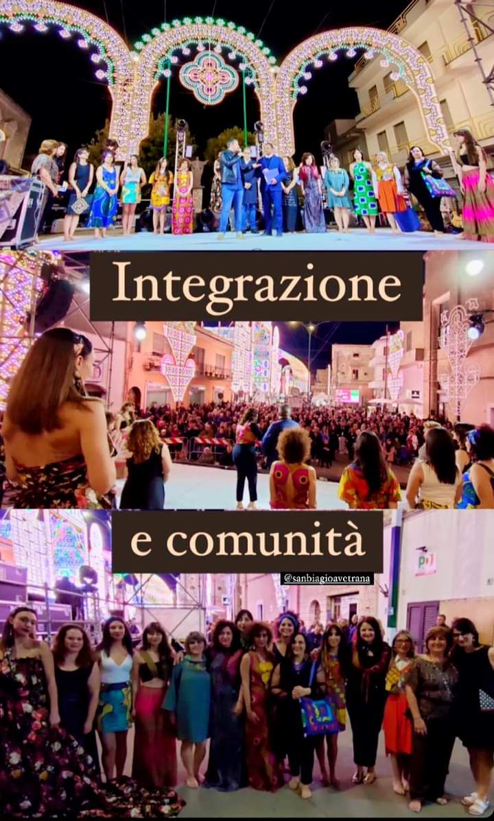 «Una sfilata caotica e gioiosa che ha visto protagoniste, oltre a delle bellissime modelle, le donne dell’Amministrazione comunale di Avetrana: una forte presenza per un iniziativa volta a sensibilizzare la comunità a favore di integrazione, collaborazione, rispetto, scambio culturale.