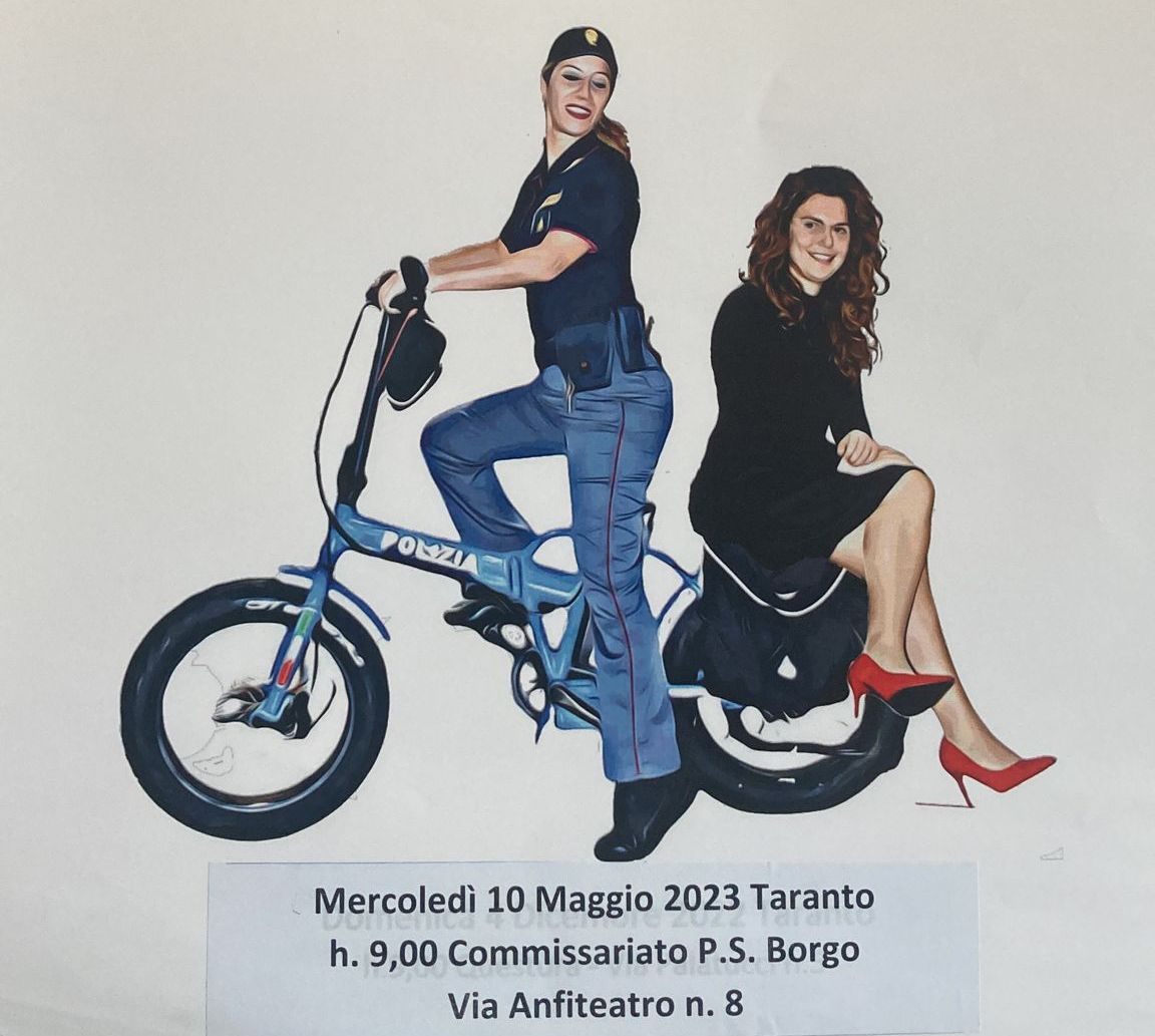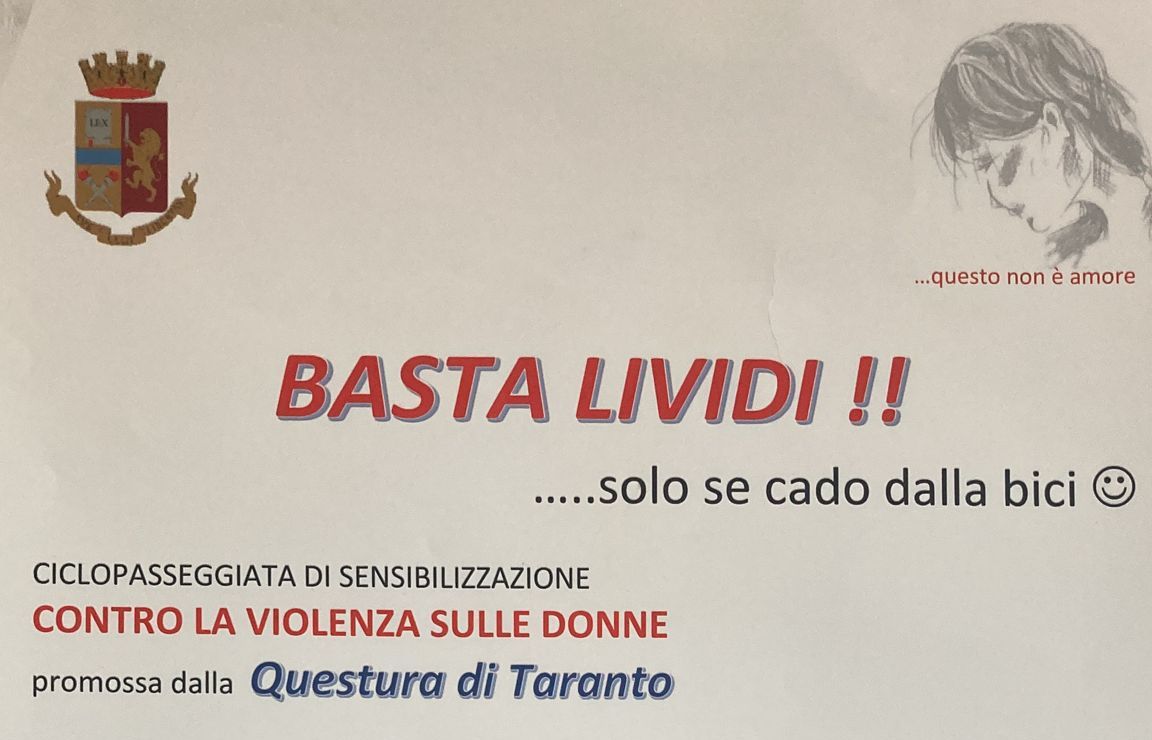 Si svolgerà domani 10 maggio, con partenza alle ore 9 dal Commissariato Borgo, la ciclopasseggiata organizzata dalla Questura di Taranto, "Basta lividi... solo se cado dalla bici", finalizzata a sensibilizzare la cittadinanza alla lotta contro la violenza di genere.