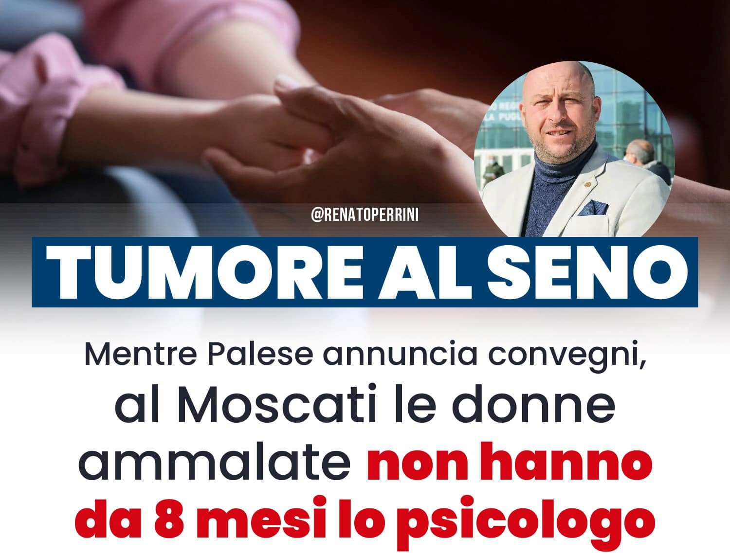 Questa volta a scrivermi è il marito di una giovane donna che da pochi mesi ha avuto un bambino: alla gioia della nascita allo spettro del tumore per altro non operabile, così inizia il calvario della chemio al Moscati di Taranto. La coppia è stravolta e ha paura e quindi chiede un aiuto psicologico per affrontare questo momento così difficile, ma gli viene detto che il servizio di supporto psicologico non c’è più dal settembre 2022 la Breast Unit (Unità Multidisciplinare di Senologia) dell’Asl è priva della figura dello Psicologo, nonostante sia obbligatorio per legge regionale. Un servizio indispensabile quando la stessa terapia, perché dovrebbe aiutare la donna e la sua famiglia a rendere la qualità della vita la migliore possibile. Un servizio negato a centinaia e centinaia di donne se solo si tiene conto che al Moscati si sono rivolte nel 2022 circa 500 donne ammalate di tumore al seno.