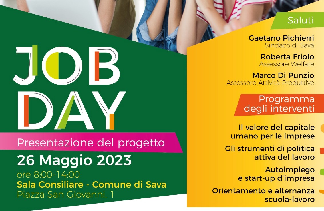 Punti Cardinali approda a Sava con il Job Day di presentazione del progetto “SavaLavora - Orientamento al Lavoro e allo start up d’impresa”, domani, venerdì 26 maggio, dalle 8 alle 14, sala consiliare del Comune (p.zza San Giovanni 1).