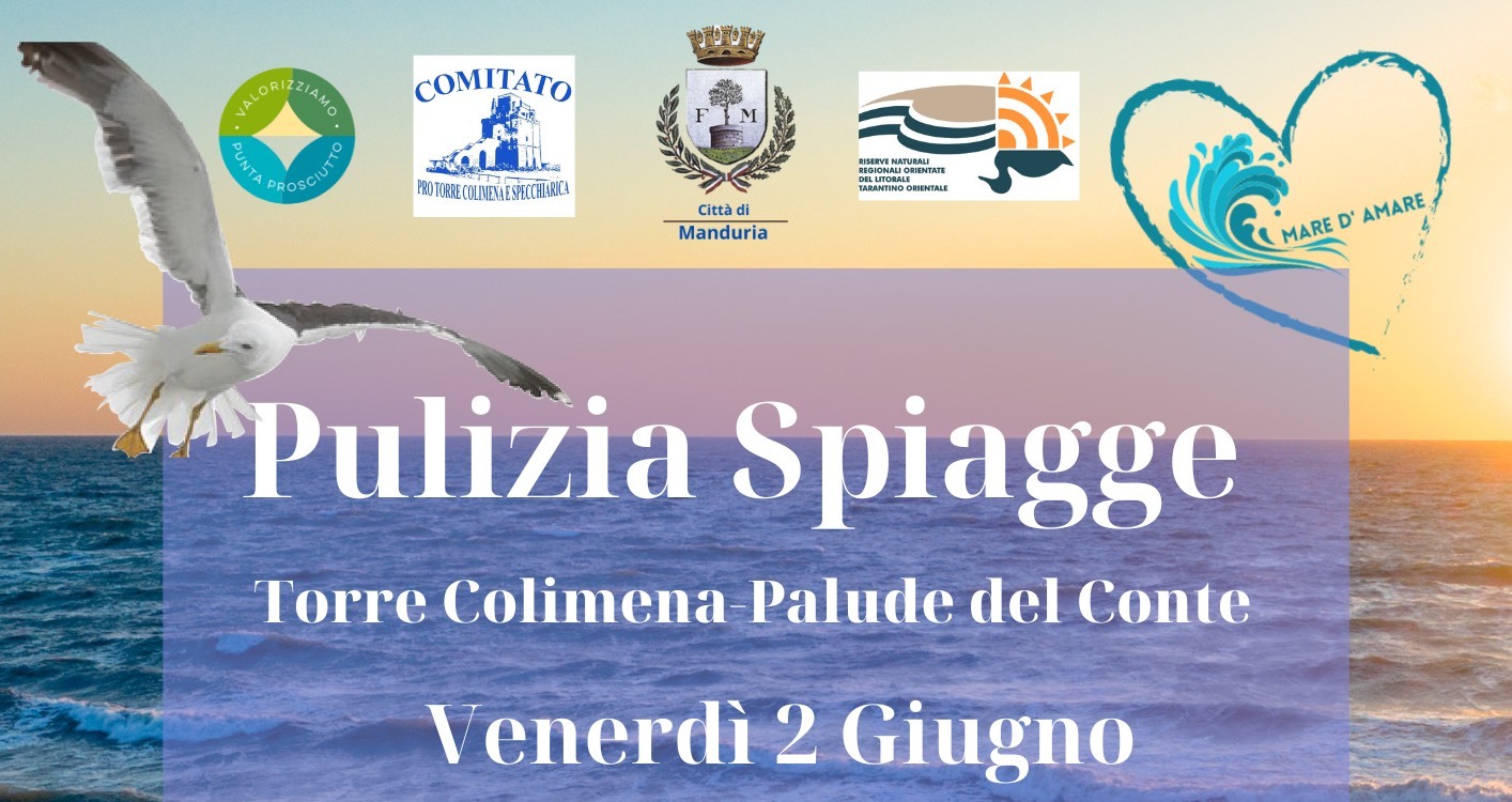 Venerdì 2 giugno, alle ore 9, i componenti dell’associazione Mare d’Amare, insieme a molti volontari, si incontreranno a Torre Colimena per pulire il tratto di spiaggia che va da Torre Colimena a Punta Prosciutto (riserva Palude del Conte).
