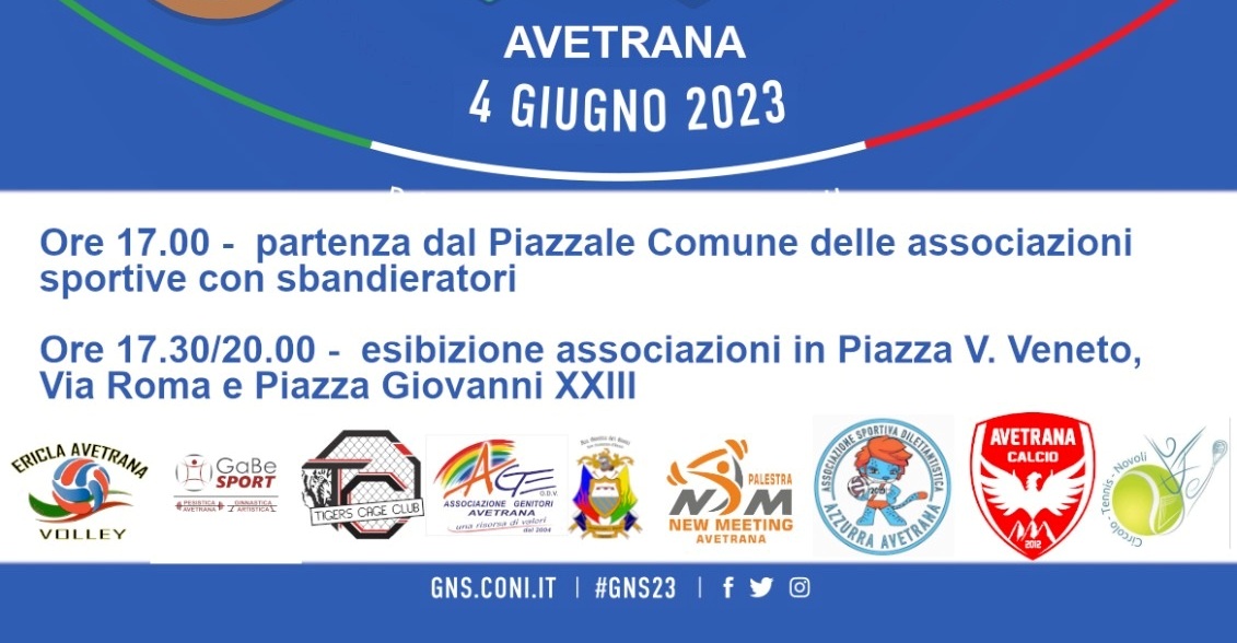 «Il Comune di Avetrana, assessorato allo Sport, ha aderito anche quest’anno all’iniziativa nazionale del Coni che appunto prevede che la prima domenica di giugno si realizzi la manifestazione sportiva coinvolgendo le associazioni sportive locali» afferma l’assessore allo Sport, Emanuele Micelli.