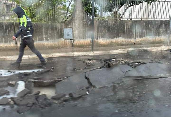 Asfalto sollevato per alcuni metri. Per fortuna nessuna conseguenza per automobilisti o passanti