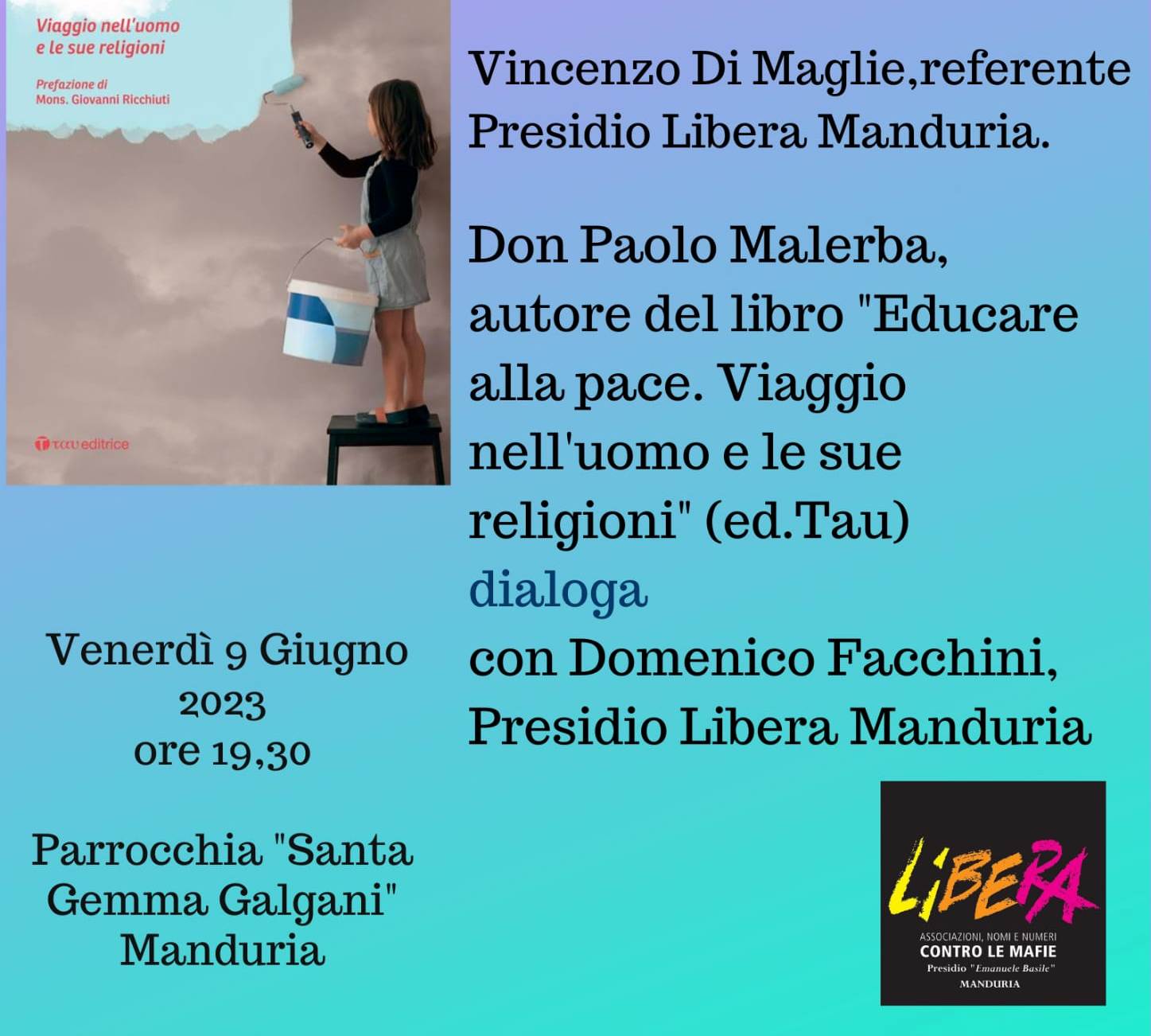 Interverrà don Paolo Malerba, autore del libro, con cui dialogherà Domenico Facchini, del presidio Libera Manduria.