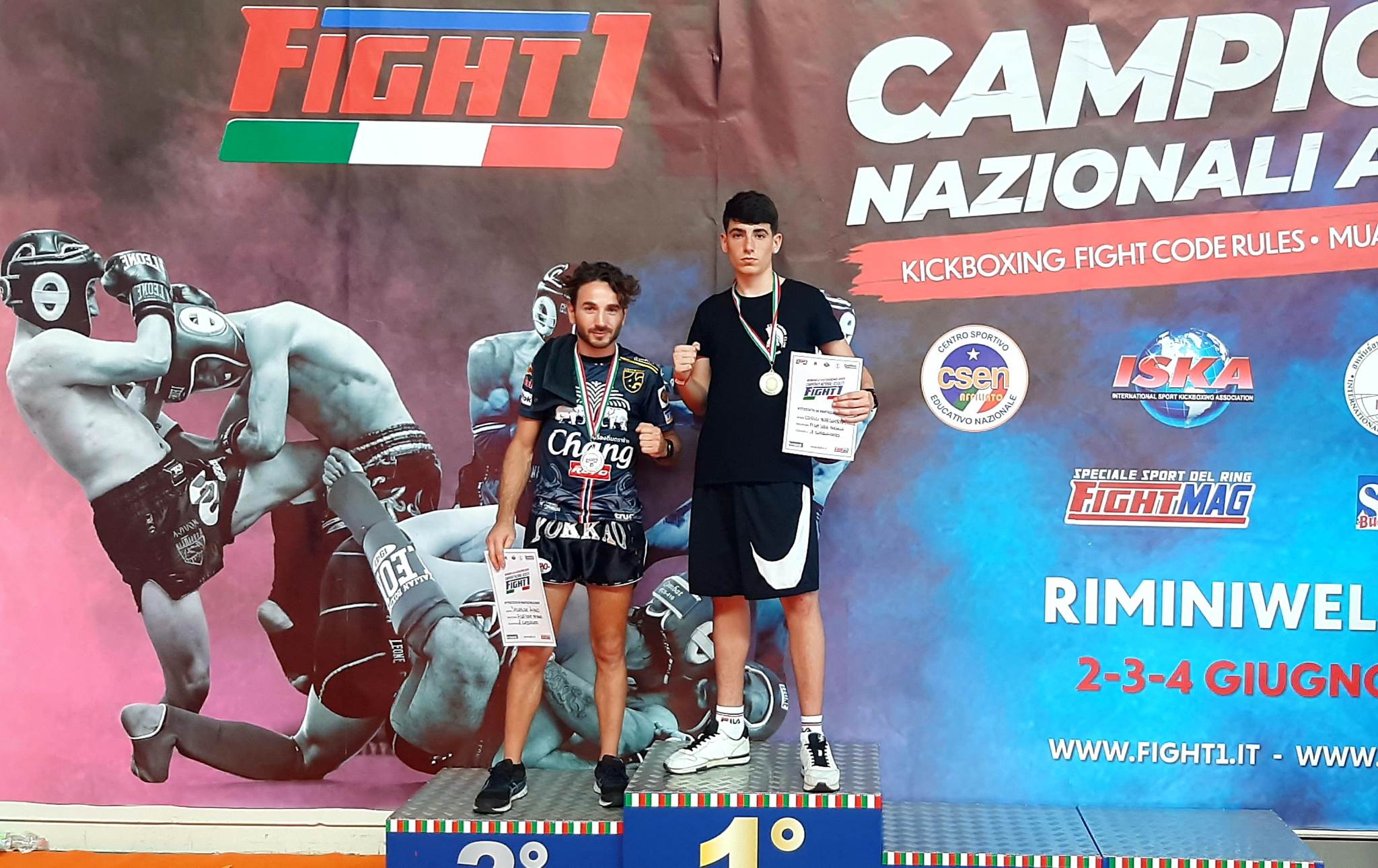 Da Rimini arriva, in serata, già un’ottima notizia: Carlo Margherita (foto in basso) ha vinto il proprio girone ed ha conquistato il titolo di campione italiano juniores categoria 60 kg di kickboxing.