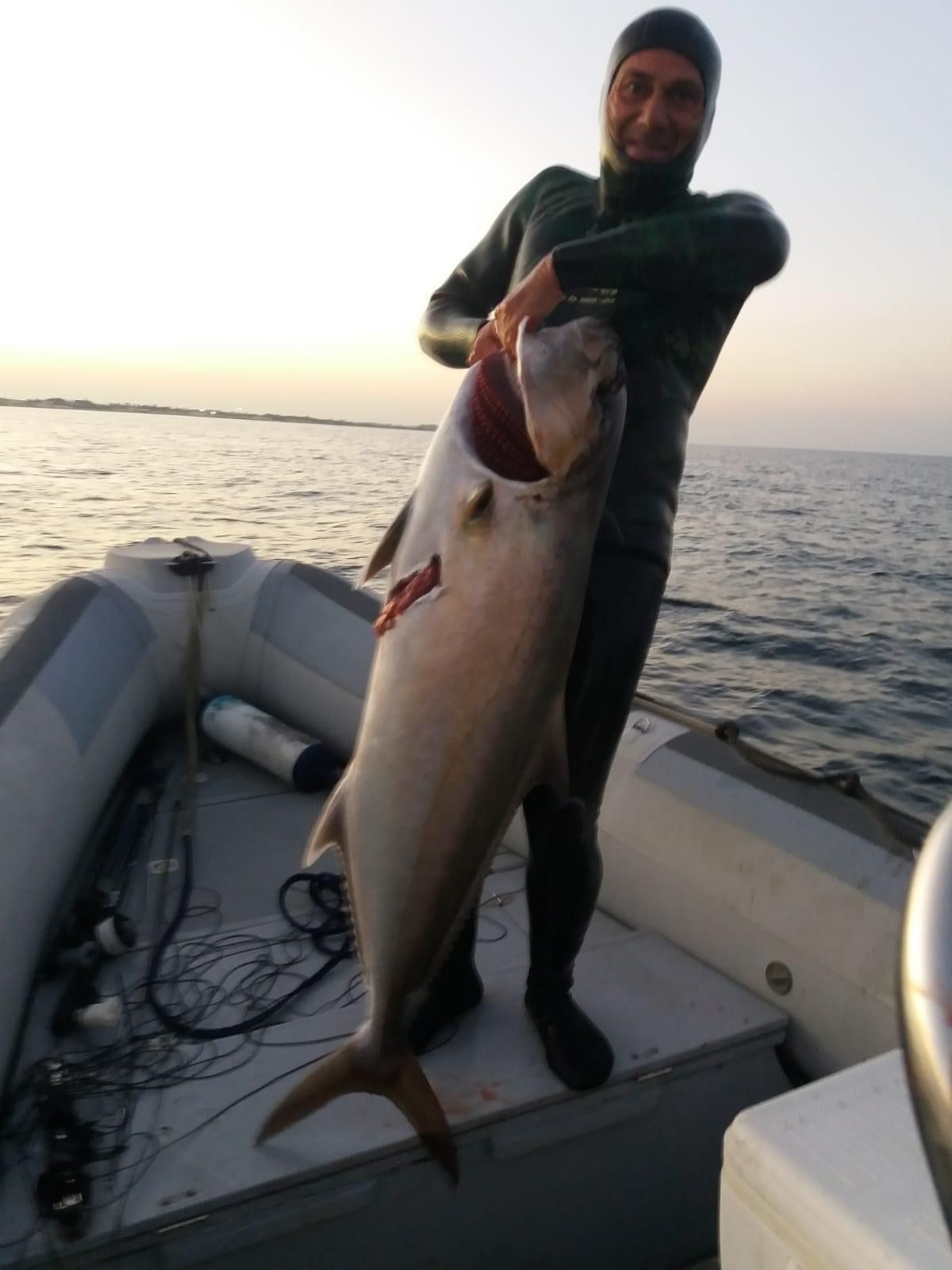 Una enorme ricciola di 37 kg è stata pescata in apnea nelle acque di San Cataldo a Lecce.