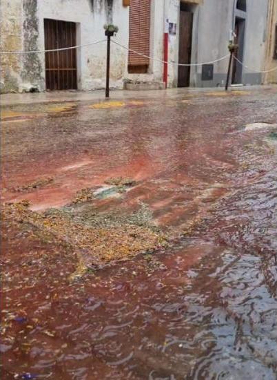 L’infiorata di Patù viene tradizionalmente allestita in segno di devozione, ma ieri mattina è stata completamente dissolta a causa del forte temporale.