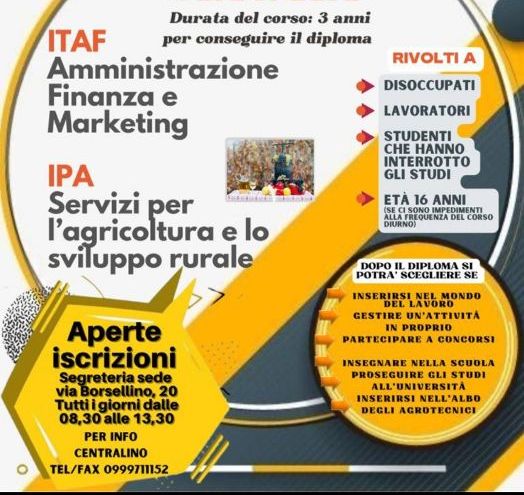 «I nostri corsi serali mirano a stimolare la ripresa degli studi, attuare una riconversione professionale direttamente spendibile nel mondo del lavoro e combattere la dispersione scolastica» è riportato in una nota dell’istituto scolastico manduriano.