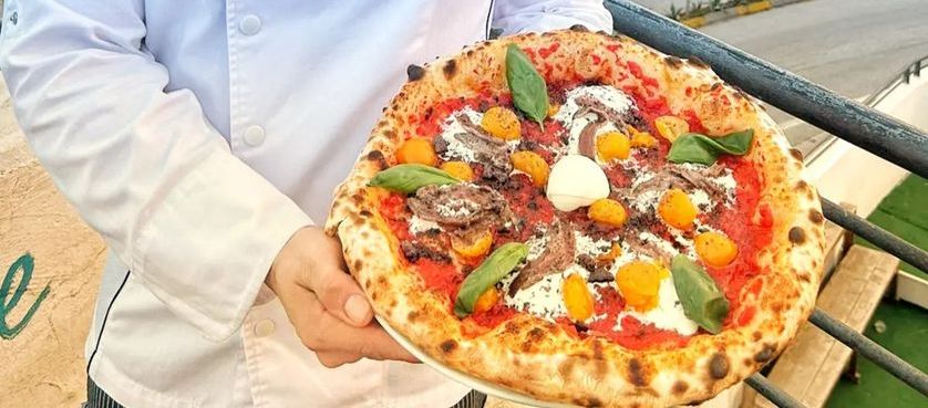 «Durante la creazione del nuovo menù per la stagione estiva 2023 ho voluto inserire una pizza che avesse il nome del posto dove è situato il ristorante e a cui sono legati tutti i miei ricordi d’infanzia» rende noto Aldo, che poi elenca tutti gli ingredienti: impasto maturato 24 h, polpa finissima di pomodoro, stracciatella pugliese, pomodorini gialli semi dried, acciughe del cantabrico, polvere di olive nere, basilico, olio evo.