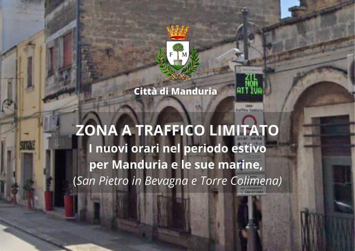 Per quanto riguarda le marine di Manduria, San Pietro in Bevagna e Torre Colimena, le Zone a Traffico Limitato sono istituite dal giorno 1 luglio 2023, per i mesi di luglio e agosto, tutti i giorni dalle ore 20,30 alle ore 1,00 del giorno successivo.