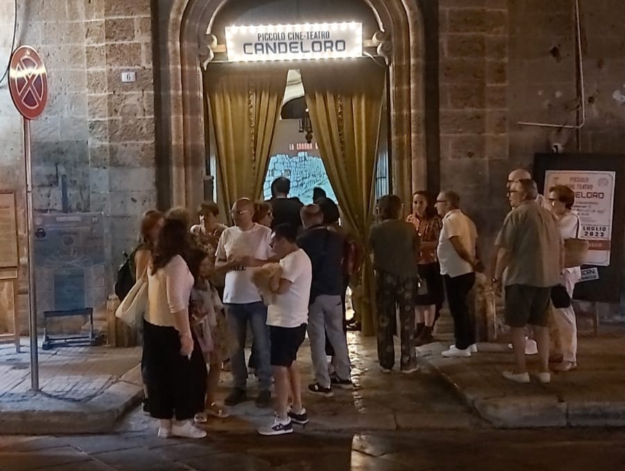 Figlia di questo romanticismo decadente, unita stretta al desiderio di comunità, di vita, e di futuro, è l’esperienza del “Piccolo Cine-Teatro Candeloro”, una mini-sala cinematografica allestita nell’androne del palazzo Briganti per la manifestazione “Androni Aperti” curata dall’associazione Archeoclub nei giorni 1 e 2 luglio appena trascorsi. Evento che ha introdotto, insieme a questo particolare remake, una riflessione più ampia sul patrimonio manduriano perduto e da salvare attraverso mostre di artigianato e biodiversità all’interno di altri due Palazzi storici del comune messapico – Palazzo Schiavoni e Palazzo Dimitri. L’androne di Piazza Vittorio Emanuele è stato affidato alla regia di un gruppo di giovani manduriani che lavorano nel campo del cinema, della comunicazione e delle arti visive con l’intento di ricreare, per soli due giorni, uno spazio in cui rivivere l’esperienza collettiva di una proiezione con la cornice scenografica – completamente ricreata da zero - del vecchio Cinema Candeloro, luogo di eventi e manifestazioni artistiche di rilevanza nazionale ormai chiuso da più di trent’anni. Abbiamo dovuto diventar ciechi, per vederci di più. Sembra essere questo il messaggio da portare a casa al termine della proiezione del breve documentario di Aimo “Manduria: dai Messapi ad oggi” fruito nelle due giornate dedicate alla manifestazione e riscoperto grazie all’esperto storico del cinema Costanzo Antermite. 15 minuti in cui ritrovarsi, tra luci soffuse, stupore, emozione e incredulità, per riscoprire per immagini la ricchezza artistica e culturale della città di Manduria. Ad accogliere i numerosi spettatori accorsi – circa 350 ingressi – un biglietto gratuito in forma di sondaggio a cui consegnare un piccolo personale pensiero sulla speranza di poter riavere un cinema a Manduria.