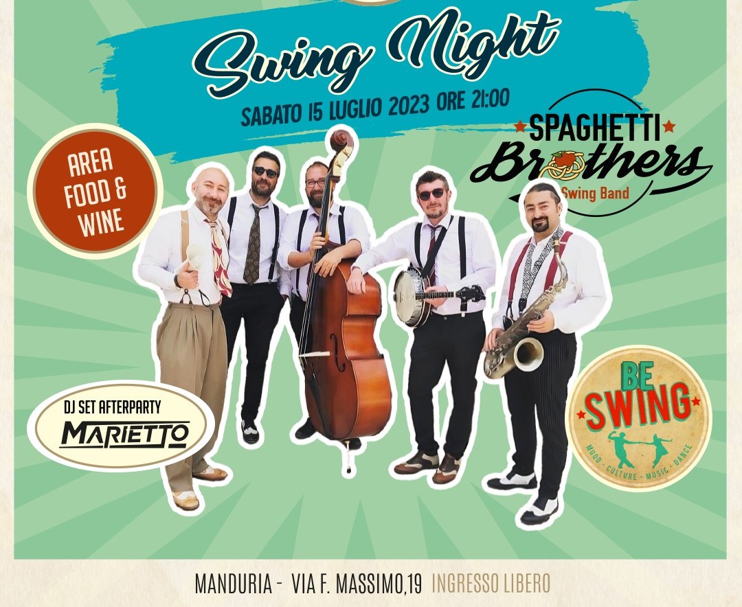 Sul palco Spaghetti Brothers, live band votata alla musica Swing, Jive e Dixieland che prende ispirazione dalle Big Band americane della prima metà del ‘900