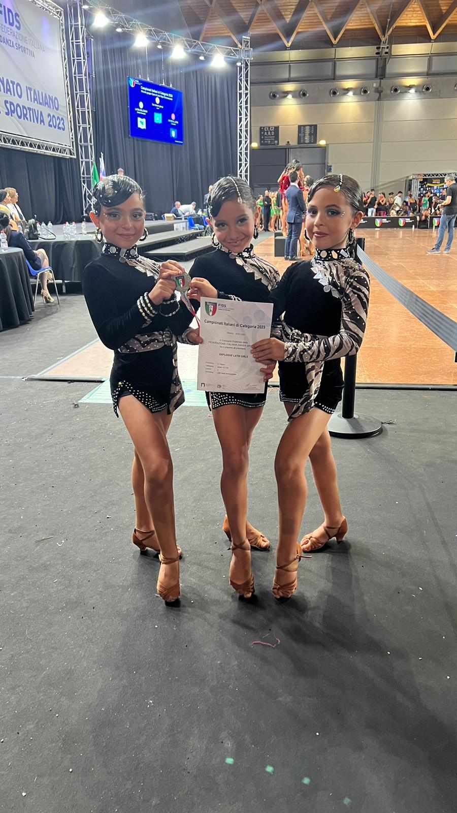 3 volte campionesse italiane e 1 medaglia di bronzo nel Duo Latin Style 8/9 classe C e nel Latin Style Solo; inoltre