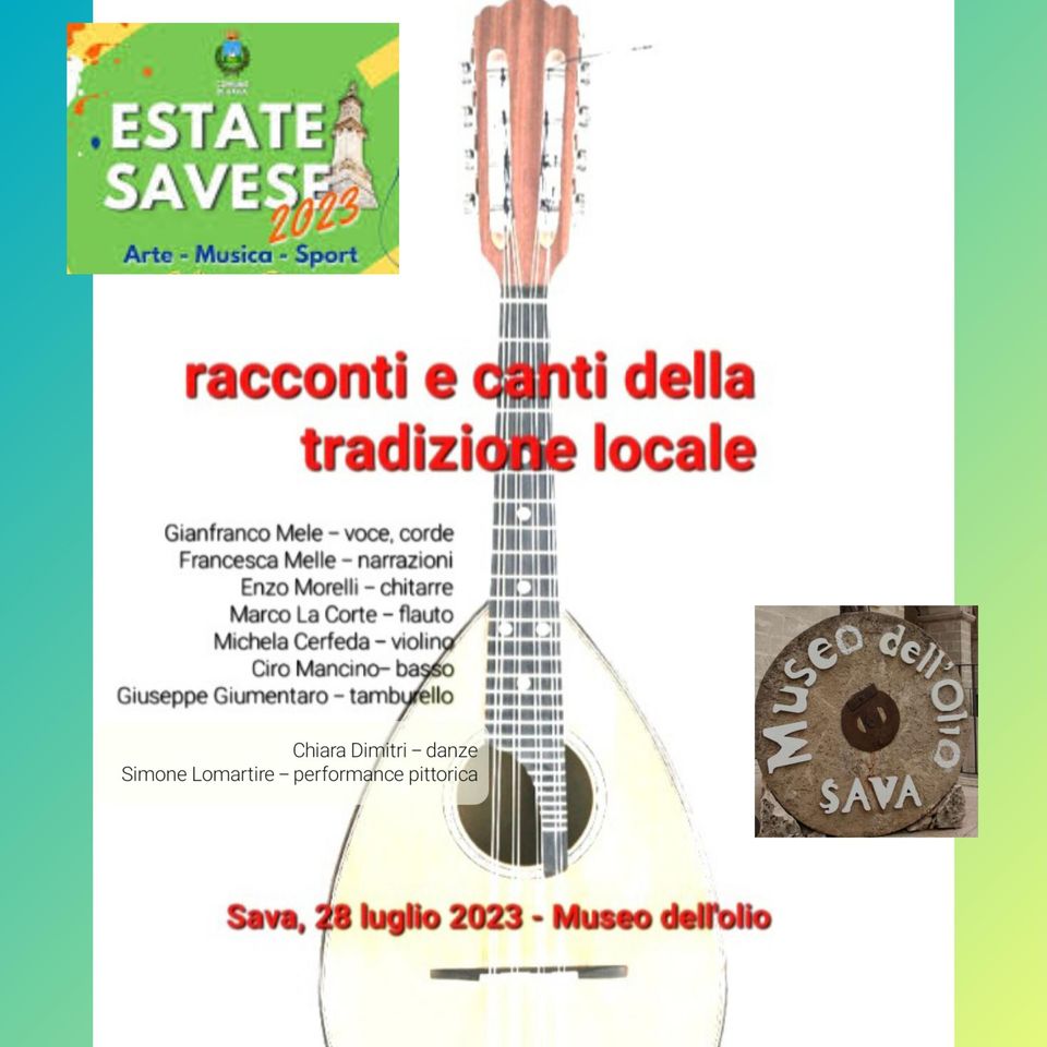 Dai cantastorie (saranno riproposti brani di un cantastorie savese vissuto tra fine '800 e inizi '900) ad alcune canzoni tradizionali dei luoghi, ad alcuni inediti, per terminare con una jam session durante la quale eseguiremo antiche tarantelle e tammurriate
