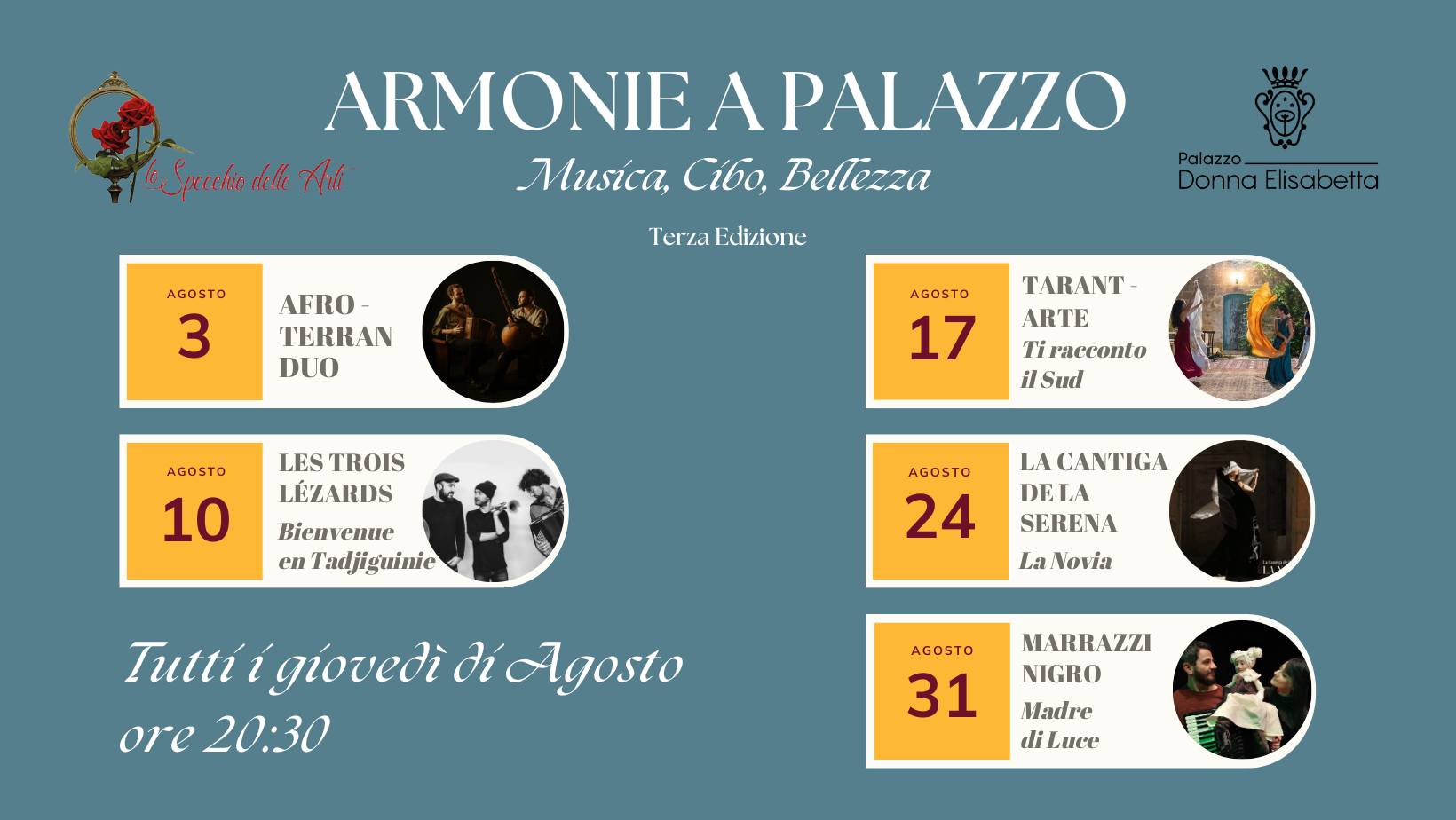 Ogni giovedì di agosto alle 20.30, “Armonie a Palazzo” ospita un evento assolutamente esclusivo.