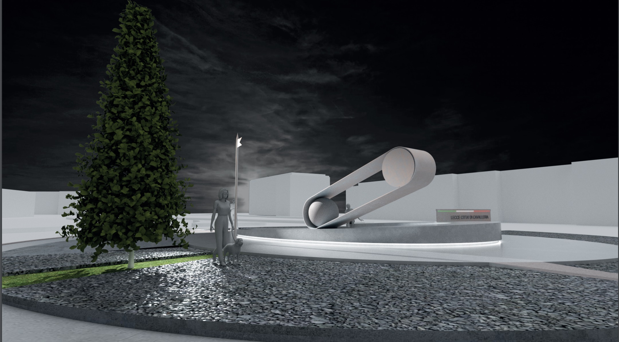 L’intervento progettato dallo studio di Architettura di Alfredo Foresta con gli architetti Lorenzo D’Elia, Tiziana Panareo e Simone Schimera e finanziato da R.I. s.p.a.di Trepuzzi con il contributo Associazione volontari italiani del Sangue di Lecce ha come obiettivo quello di riqualificare una rotatoria in stato di abbandono situata nella zona periferica del capoluogo salentino, all’incrocio tra viale Grassi e viale della Repubblica al confine tra i quartieri San Pio e Ferrovia. Un simbolo d’arte che si inserisce in un panorama urbano periferico, pronto a vivere una stagione di riqualificazione; una sperimentazione ideata da Foresta, promossa dal direttivo ANAC e voluta dal Generale Dei, che vedrà, a breve, la realizzazione anche del Museo della Cavalleria lungo il muro della caserma Zappala.