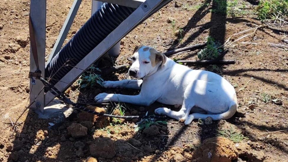 Cagnolino legato ad un traliccio e abbandonato nelle campagne che da Nardò portano a Copertino.