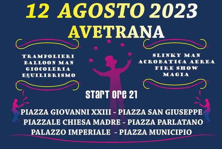 Questa sera le vie del centro di Avetrana saranno animate, a partire dalle ore 21, da “Street Art, il Festival degli artisti di strada”,