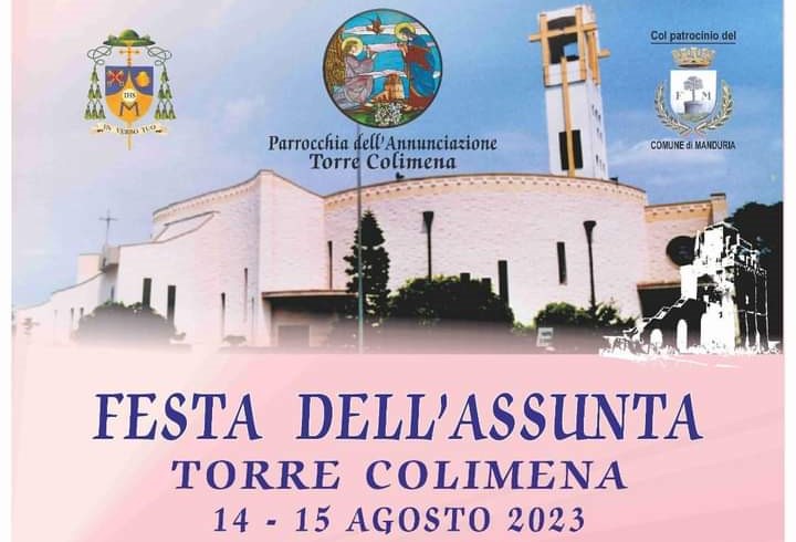 Domani entra nel vivo la festa dell’Assunta: ecco il programma religioso e quello civile, elaborato da don Daniele Giangrande, parroco della parrocchia dell’Annunciazione di Torre Colimena.