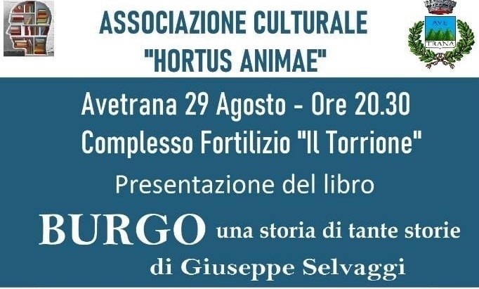 Martedì 29 agosto avrà luogo la presentazione del libro “Burgo. Una storia di tante storie” di Giuseppe Selvaggi.