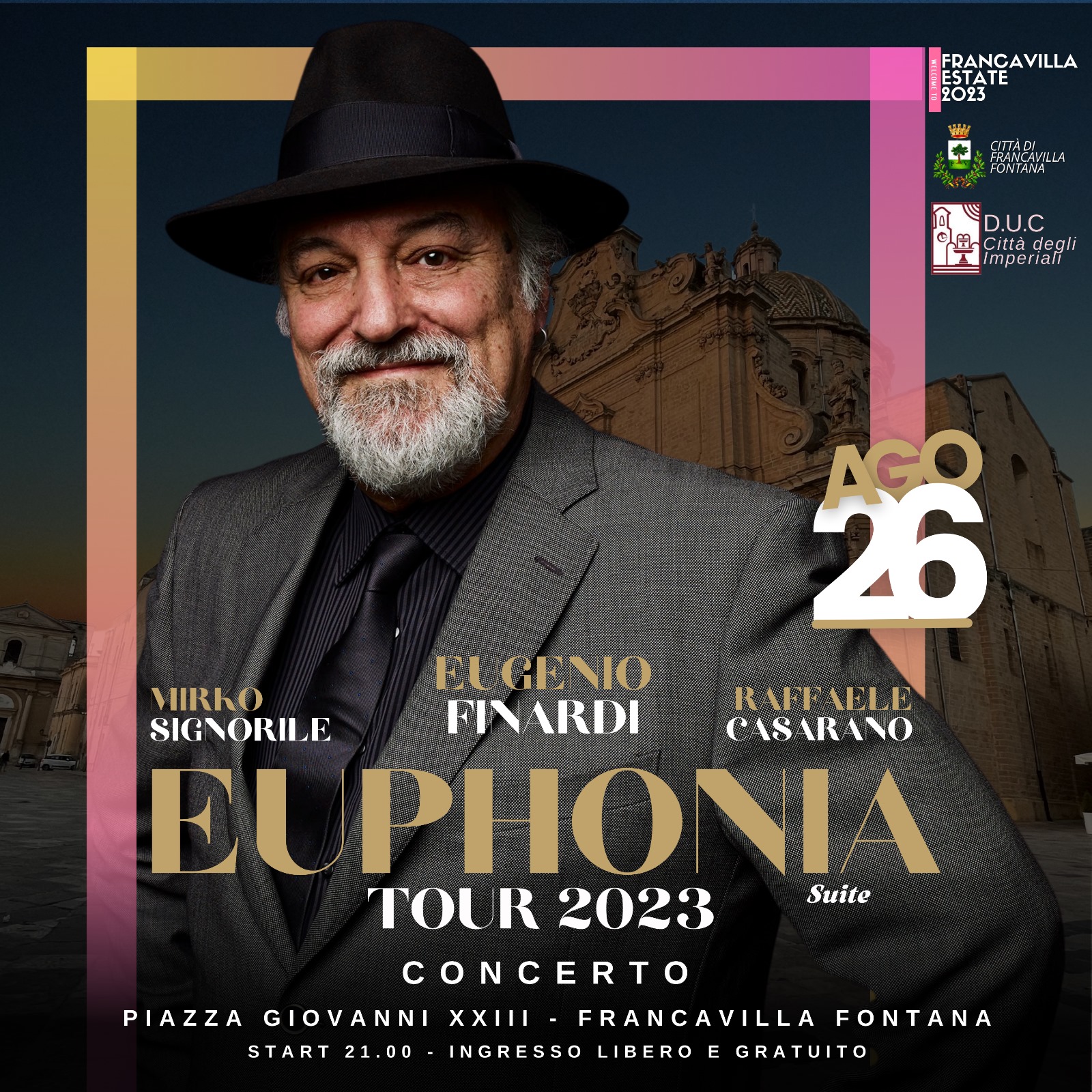 Sabato 26 agosto, alle 21, in piazza Giovanni XXIII Eugenio Finardi presenterà Euphonia, il suo ultimo progetto musicale realizzato con Raffaele Casarano (sassofono) e Mirko signorile (pianoforte).