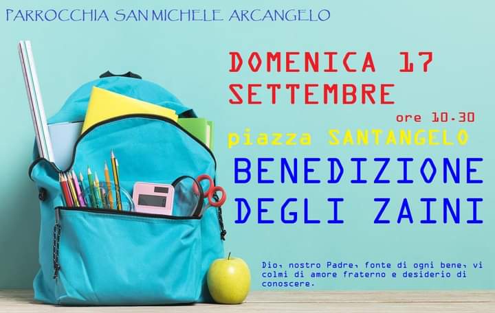 La parrocchia San Michele Arcangelo promuove, per domenica 17 settembre, alle ore 10,30, in piazza Sant’Angelo, la “Benedizione degli zaini”.