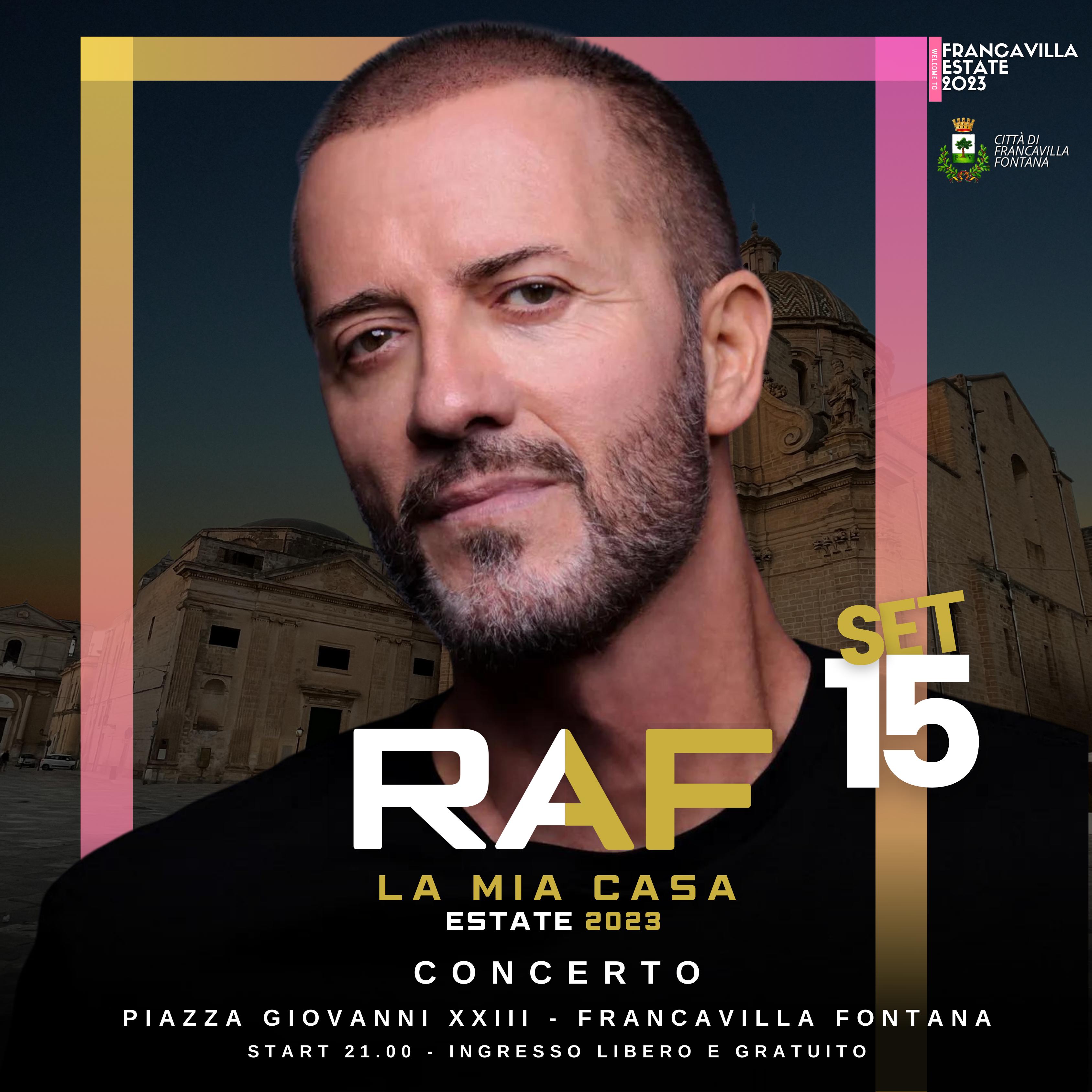 Venerdì 15 settembre, in piazza Giovanni XXIII, alle 21.30 sarà di scena Raf, uno dei cantautori più ascoltati e apprezzati della musica italiana, che si esibirà in una tappa del tour “La mia casa”.