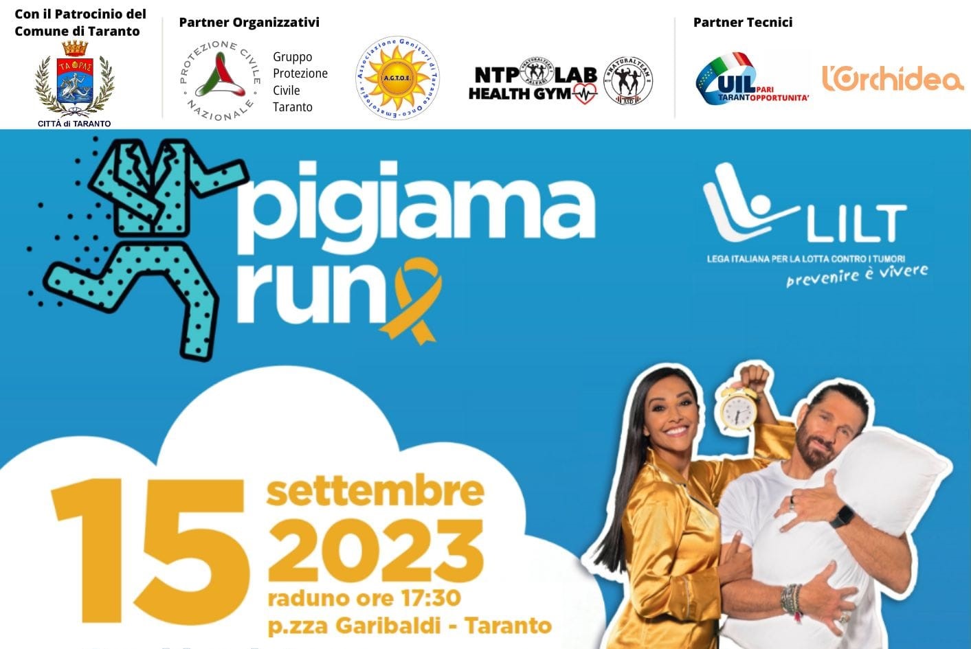 Indossare un pigiama e animare in gruppo le vie centrali di Taranto. Per un giorno la mobilitazione per i bambini malati di tumore si riveste di nuovi significati e assume il nome di Pigiama Run, l’insolita corsa-camminata non competitiva in abiti da letto promossa dalla Lega Italiana per la Lotta contro i Tumori (Lilt), che si terrà il prossimo 15 settembre in 23 città italiane, tra cui il capoluogo ionico.
