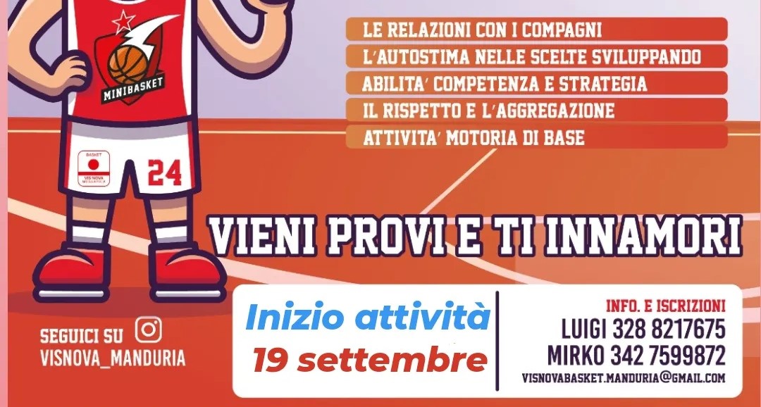 Iniziano a breve le attività di basket e minibasket della Vis Nova Messapica di Manduria.