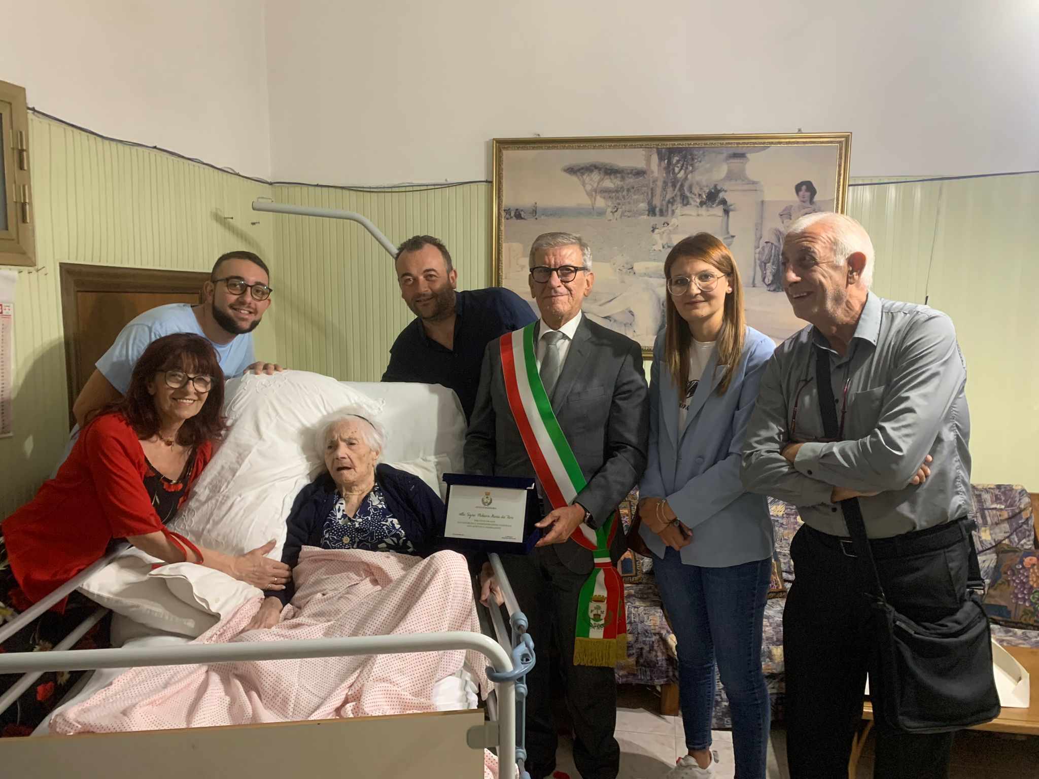 Ieri la festa della signora Maria, attorniata anche dagli altri nipoti e pro-nipoti. La centenaria ha anche ricevuto la visita del sindaco Pecoraro, che le ha donato una targa-ricordo.