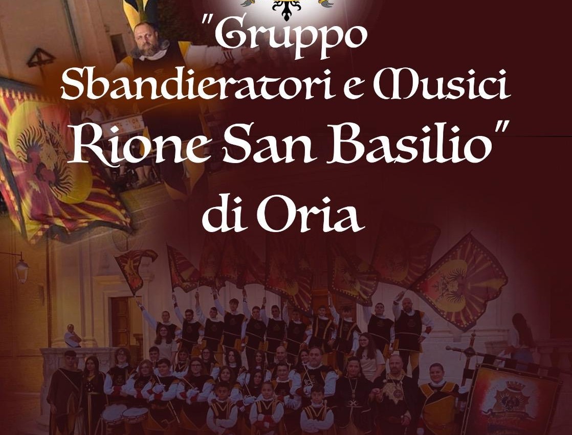 Il 4 ottobre, nell’ambito del programma per i festeggiamenti in onore di San Francesco, al rientro della processione, dopo lo spettacolo dei fuochi pirotecnici, il Gruppo Sbandieratori e Musici Rione San Basilio di Oria si esibirà, di fronte la chiesa intitolata al santo patrono d’Italia, con dimostrazioni di singoli e in gruppo, esaltando l’armonica unione dei corpi in movimento con bandiere accompagnati da musiche di ispirazione medioevale, eseguiti da timpani e chiarine. Tale esibizione si trasforma in un affascinante spettacolo coreografico, arricchite ancor più dai fastosi costumi e dalle aggraziate movenze dei figuranti del corteo storico.