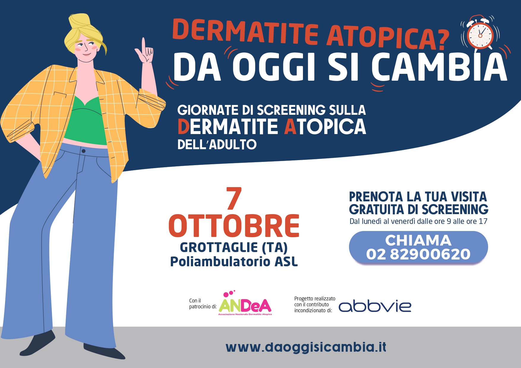 “Dermatite Atopica? Da oggi si cambia” è realizzata in collaborazione con ANDeA (Associazione Nazionale Dermatite Atopica) e grazie al contributo incondizionato di AbbVie.
