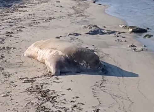 A prima vista si è pensato si trattasse di un cetaceo, ma, a seguito dell’esame del video della carcassa, è stato appurato che si tratta di un bovino