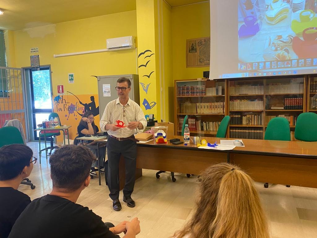Accettando l’invito, agli studenti dell’istituto Einaudi Giovanni Sanasi ha illustrato come nascono le sue invenzioni, partendo dall’analisi dei bisogni, sia alla realizzazione dell’idea.
