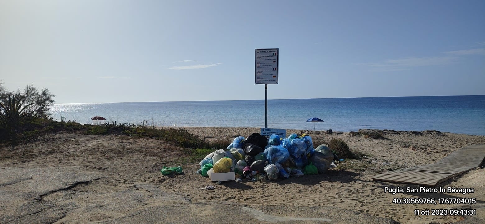 Ecco come si presentava la marina di Manduria questa mattina: tantissimi rifiuti in attesa di essere rimossi.