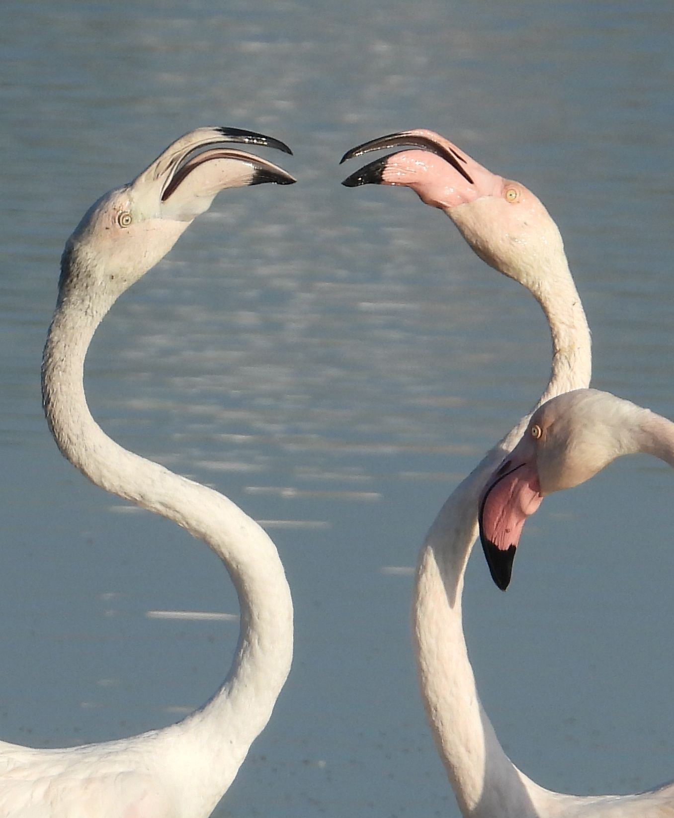 Effusioni fra i fenicotteri della Salina dei Monaci fotografate da Carlo Bizzini.