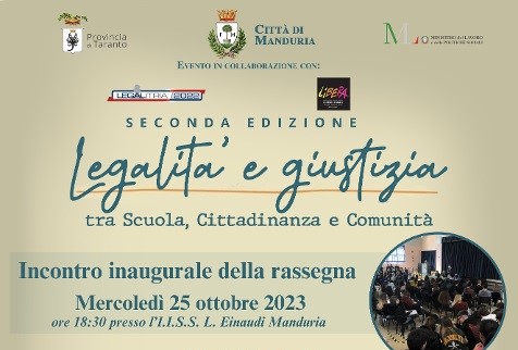 La rassegna “Legalità e Giustizia tra Scuola, Cittadinanza e Comunità”, voluta dall’Amministrazione Comunale, giunge alla sua seconda edizione. Un programma educativo sulla legalità e sulla giustizia aperto alla comunità cittadina, agli studenti del territorio, ai diversi attori impegnati sul campo, che prevede una serie di incontri con magistrati, giornalisti, attivisti contro ogni etica dell’illegalità.
