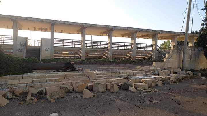 Tromba d’aria abbatte il muro di cinta dello stadio di Cursi, rendendo impraticabile la struttura sportiva, E’ stato pertanto rinviata la partita, in programma per oggi pomeriggio, fra Cursi e Sava.