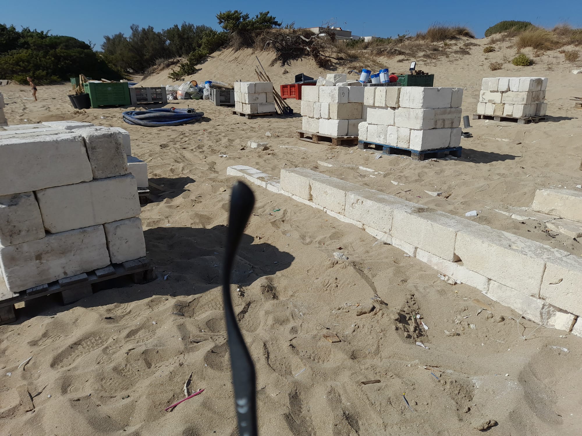 «Premesso che sono giunte numerose segnalazioni, corredate da varie foto, da parte di molti cittadini manduriani e da parte di turisti, circa dei lavori che si starebbero svolgendo a pochi metri dalla spiaggia adiacente la pineta in San Pietro in Bevagna; dalle foto si possono intravedere impronte di mezzi meccanici cingolati sulla sabbia e diverse pedane contenenti decine di conci di tufo.