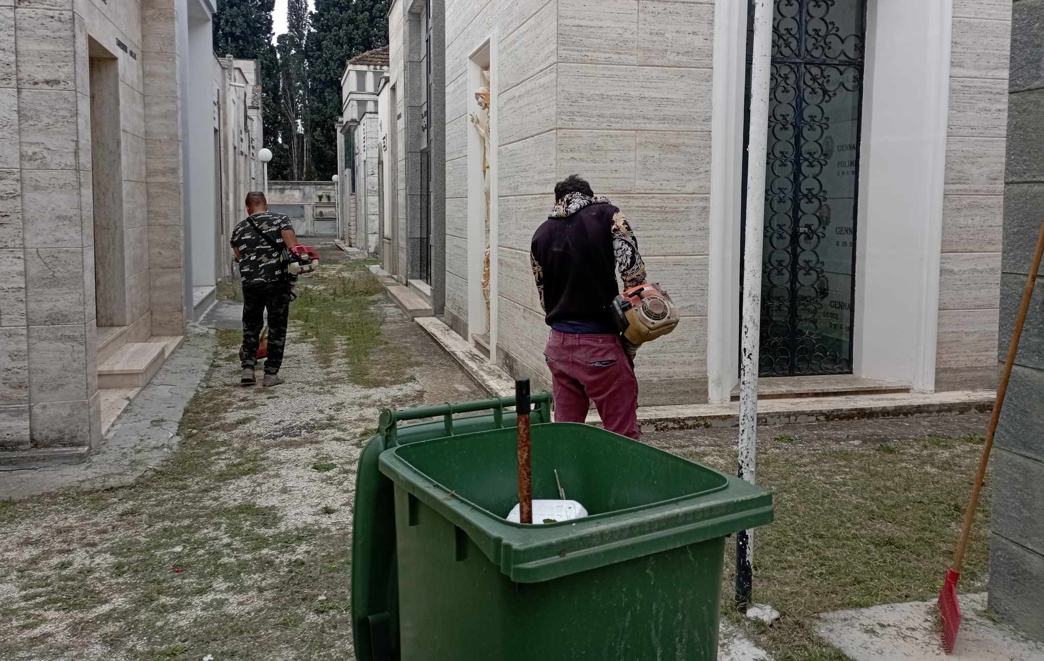 Una grossa mole di lavoro, iniziata già alcuni mesi fa, quando i percettori erano tre. Adesso sono sei e tutti loro sono impiegati nel lavoro di pulizia del cimitero: a pochi giorni dalla Commemorazione dei Defunti, sono state estirpate le erbacce, rimosso il materiale di risulta edile e il sabbione dai marciapiedi nuovi.