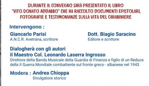 Interverranno Anna Saracino, docente di Lettere; Cosimo Mangia, Ten. Col. della Scuola di Cavalleria “S. Zappalà” di Lecce; Antonio Cerbino, presidente provinciale A.N.C.R. di Taranto; Biagio Saracino, curatore ed editore del libro; Giancarlo Parisi, autore del libro.