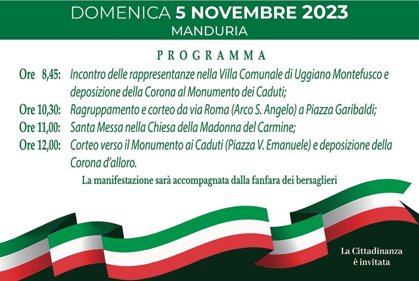 Il programma: iniziative prima a Uggiano Montefusco e, poi, a Manduria