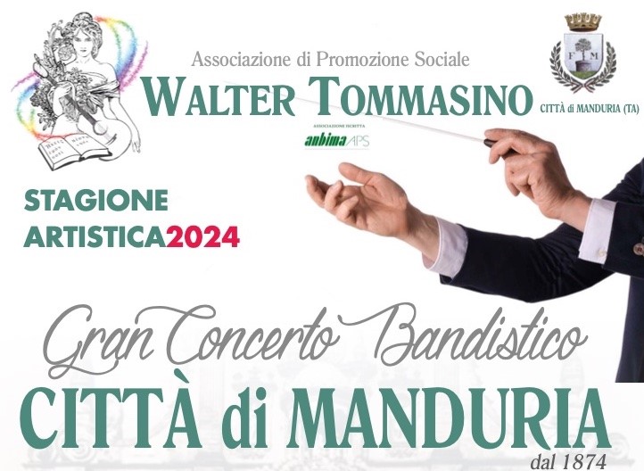 Fautrice e autrice del progetto di ricostituzione e sviluppo del Gran Concerto Bandistico, dopo anni di inattività, è l’associazione culturale manduriana “Walter Tommasino”, a cui l’ente comunale ha ufficialmente affidato il titolo e il blasone della gloriosa banda cittadina.