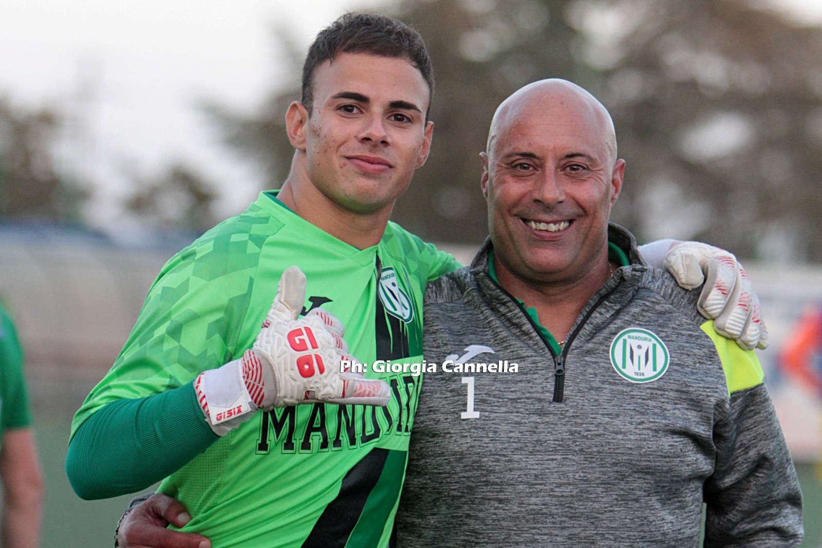 In panchina va un ragazzino degli allievi, 2007 anche lui. Daniele fa il suo esordio a sedici anni, intuendo due rigori. Sul primo, Russo scheggia il palo e la palla va fuori, sul secondo Girardi calcia talmente forte che non basta l’ottima idea di tuffarsi ancora verso quell’angolo. L’esordio arriva il giorno del compleanno del nonno: incastri casuali, ma non troppo, specie per chi ci crede davvero nei segnali. Daniele si toglie i guanti e strappa via la tensione, mister Andrea si emoziona sotto la gradinata del “Camassa” di Sava. Il Manduria ha vinto, Daniele pure. La partita è finita, l’adrenalina è in circolo, il pubblico canta.