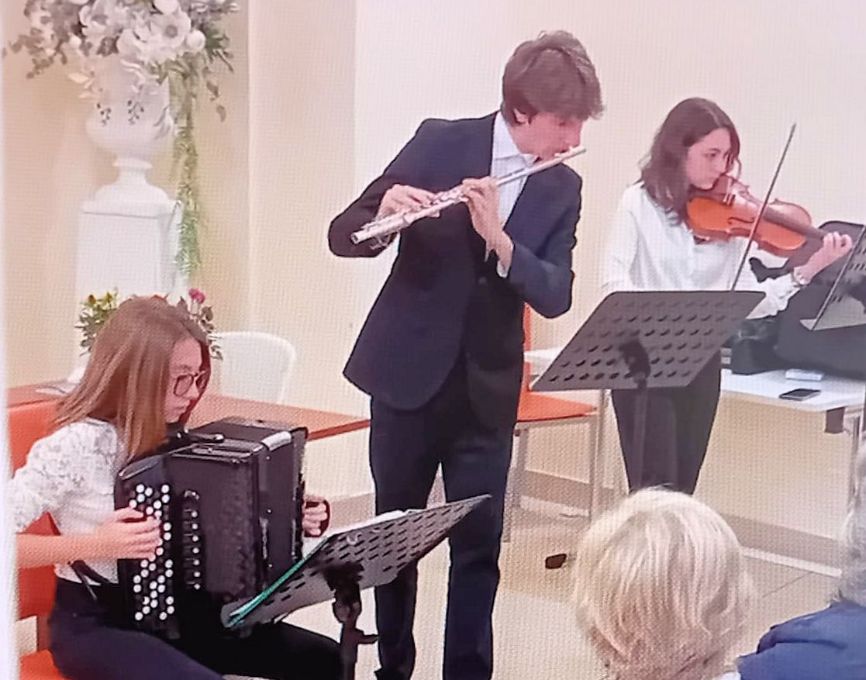La serata è stata allietata da intermezzi musicali eseguiti da un trio di giovanissimi studenti composto da Flavio Carlo Chimienti (flauto), Giada Koni (violino) e Martina Koni (fisarmonica).