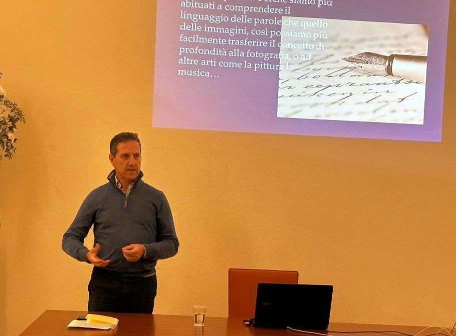 Il relatore si è soffermato inizialmente sul significato e sulle tecniche del “linguaggio” artistico in generale. Ha poi proposto una suggestiva analisi del “linguaggio” di tre poesie di Montale, Pascoli e Ungaretti, passando poi a riproporre l’analisi parallela del “linguaggio” di tre opere di famosi fotografi. Evocando immagini e provocando sensazioni ed emozioni in un uditorio attento e, spesso, affascinato.