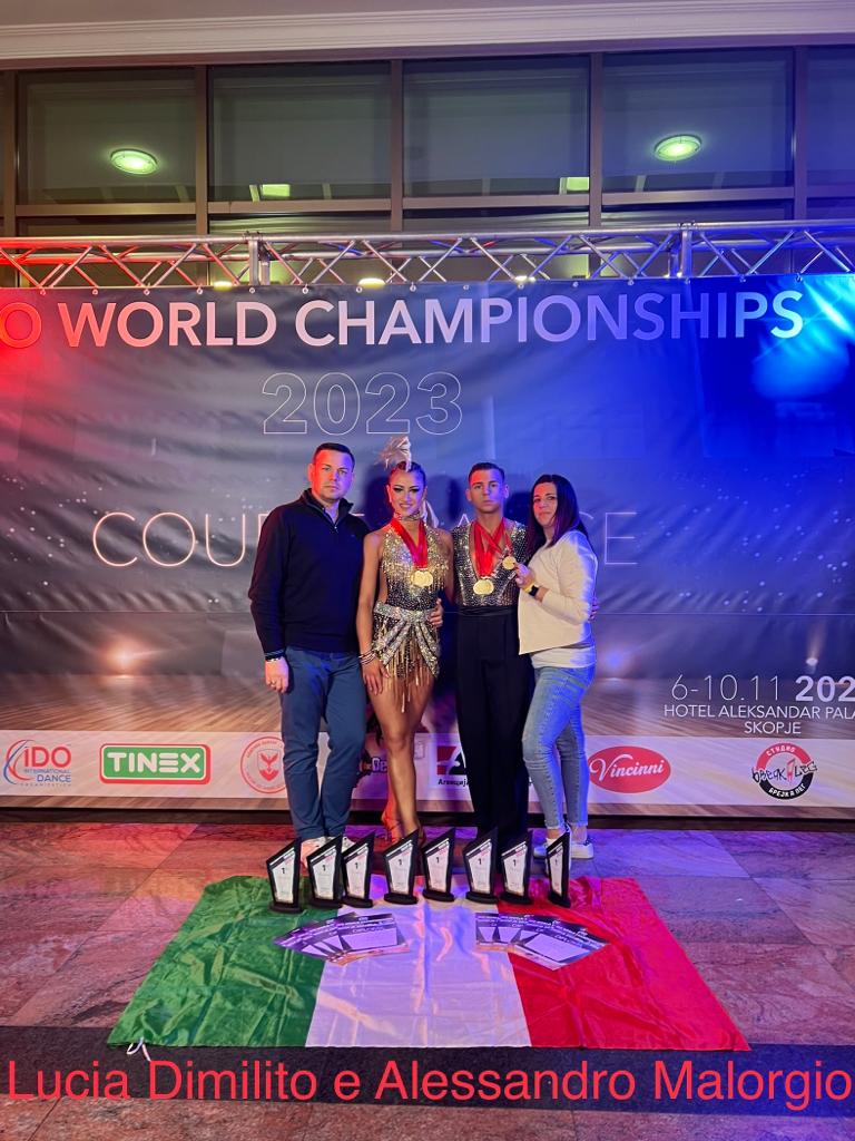 Danza sportiva, incetta di titoli mondiali per gli atleti della scuola Team Dance Erario Academy di Manduria nei campionati che si sono svolti a Skopie, nella Macedonia del Nord.